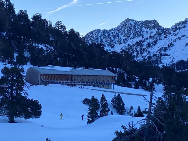 Fred, lui, semble avoir découvert un nouveau sport : la descente avec peaux. Tellement à l’aise qu’il n’a plus envie de les enlever… pendant que nous rêvons plutôt de belles courbes légères, comme skiées précédemment. Seb finit par trancher : putsch validé à l’unanimité, on enlève les peaux ! Les virages s’enchaînent et nous ramènent finalement au refuge de los Ibones de Bachimaña. Et là, surprise. Une équipe de la télévision aragonaise tourne un documentaire sur le refuge. Fred se retrouve rapidement au cœur de l’action et accepte de répondre à quelques questions, face caméra, entouré de toute l’équipe. La journée se termine : douche chaude, bière bien méritée, puis notre traditionnel tour de table pour partager les moments forts et les petits passages plus difficiles. Les ampoules, elles, commencent sérieusement à se rappeler à nous. La dernière soirée se prolonge autour d’un dernier verre avec le gardien du refuge et les journalistes. La montagne s’endort. Nous aussi après 13kms et 980 m de dénivelé.