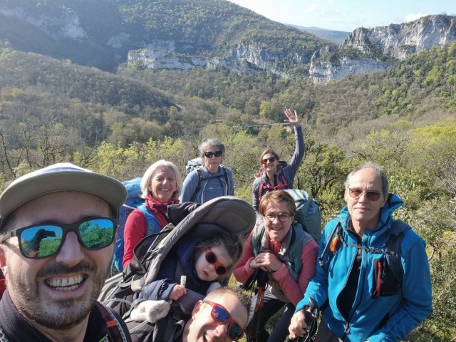 On prend quelques photos avec la falaise des Capucins en arrière-plan. Puis on s'attaque à la descente de la côte de Ouf, une succession de mains courantes à flanc de falaise (gare à la tête !), tout le monde se régale. C’était une descente de Ouf. Puis on fait un petit aller-retour au bord de l’eau pour reposer les jambes et hop, on retourne à la côte de Ouf, en montée cette fois ci, dans la joie et la bonne humeur ! Cette nouvelle montée ne fait pas peur à la joyeuse troupe de Muret Montagne qui se hisse en haut des gorges avant d’avoir eu le temps de dire "Ouf".