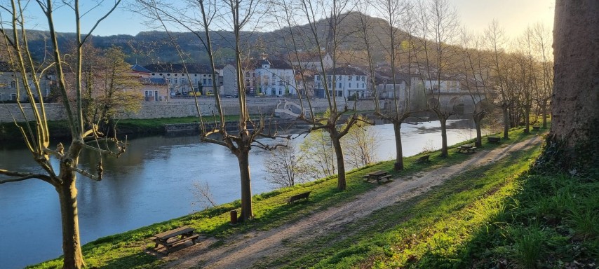 On arrive donc à Saint Antonin Noble Val, le froid est saisissant. Tout le monde s’équipe rapidement et on démarre la rando en pente douce, au bord de l'Aveyron.