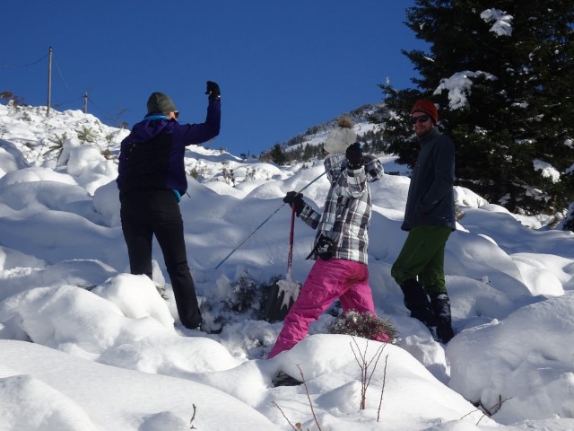 Avec le groupe d’Arnaud et Chris nous montons sur une pente bien enneigée, bel exercice pour