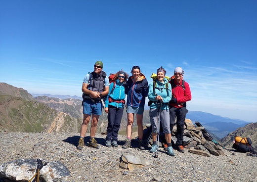 lundi 15 juillet : nous attaquons la montée par le Col Mitja à 2367m et basculons sur la vallée de Riberola. Déjeuner sur l’herbe à l’ombre des pins toujours à crochets et retour vers Prats Balaguer ! Après avoir marché dans les herbes hautes, nous repérons quelques tiques que nous prélevons tels des bonobos. Ne vous y méprenez pas, c’est bien notre seul point commun avec eux, si ce n’est une société plutôt matriarcale conduite par une femme, Mariannick, qui a préparé une rando aux petits oignons et a su nous guider les yeux fermés ! Merci pour ces 3 jours magnifiques avec au total 35kms parcourus et 2450m de D+!!