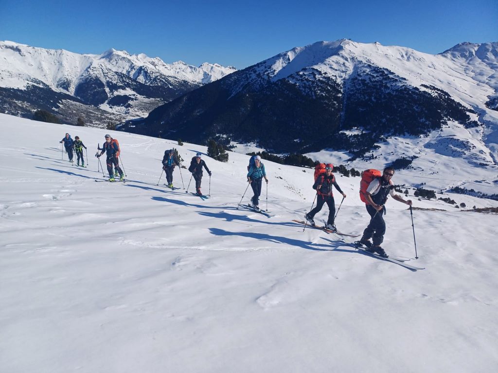 La joyeuse troupe de 20 skieurs dont 2 encadrants est partie de Muret direction l'Espagne pour une sortie initiation. L' enneigement était remonté, les pentes Nord verglacées, nous avons opté pour le cap de Closos en partant de Baqueira Beret.