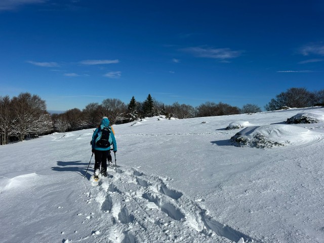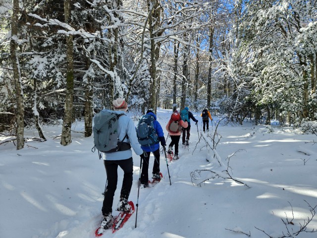 On chausse rapidement les raquettes avec ce joli programme de neige fraîche, ce soleil radieux, et cet environnement laponien splendide.