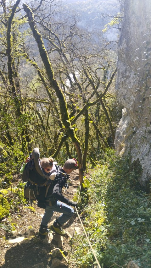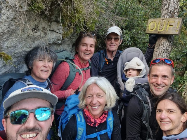 On prend quelques photos avec la falaise des Capucins en arrière-plan. Puis on s'attaque à la descente de la côte de Ouf, une succession de mains courantes à flanc de falaise (gare à la tête !), tout le monde se régale. C’était une descente de Ouf. Puis on fait un petit aller-retour au bord de l’eau pour reposer les jambes et hop, on retourne à la côte de Ouf, en montée cette fois ci, dans la joie et la bonne humeur ! Cette nouvelle montée ne fait pas peur à la joyeuse troupe de Muret Montagne qui se hisse en haut des gorges avant d’avoir eu le temps de dire "Ouf".