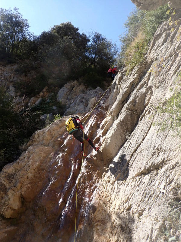 La pose d'un Dufour sur tronc nous permettra de profiter de la belle cascade arrosée qui suivait.