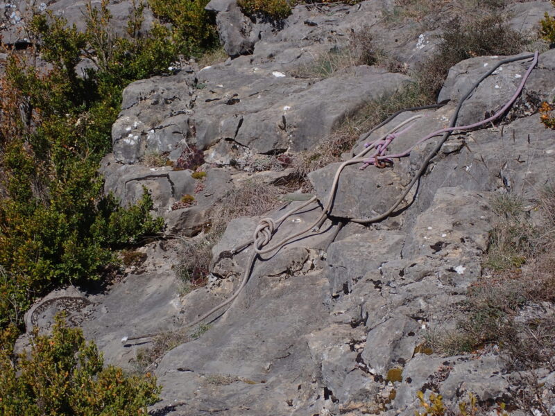 Peu après, un sac tout neuf a été oublié en haut du rappel ! L'occasion de manipuler et faire une remontée sur corde.