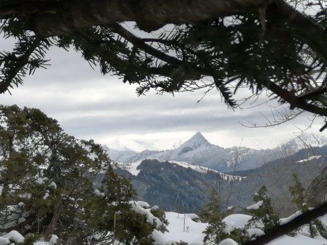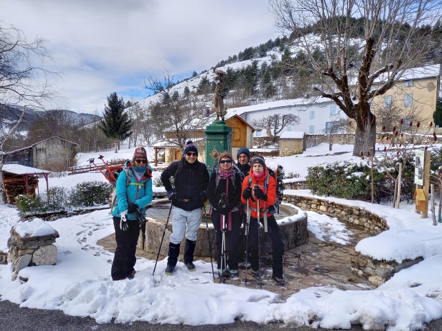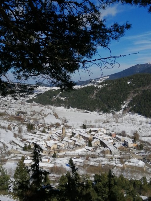 La descente se poursuite par la forêt, sur un petit sentier de neige immaculée qui nous fera rejoindre le joli village de Prades…