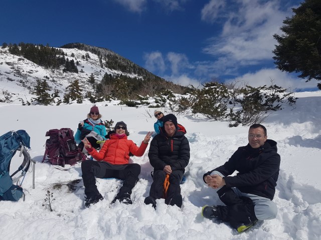 Puis pause déjeuner à l’abri du vent, faces au soleil, dans la joie et la bonne humeur.