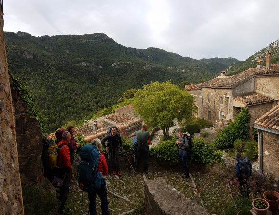Le 2eme jour nous amène à traverser le joli village médiéval de Pégairolles de Bueges. Ici et là, la variété de fleurs et d’arbustes suscite la curiosité de nos botanistes en herbe !