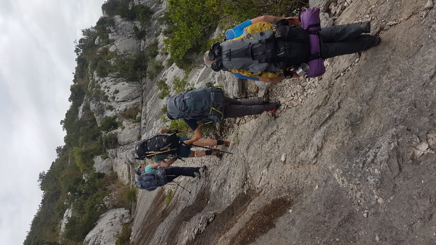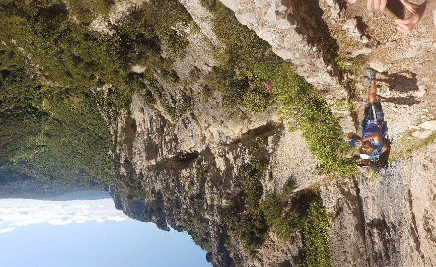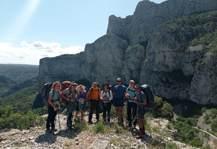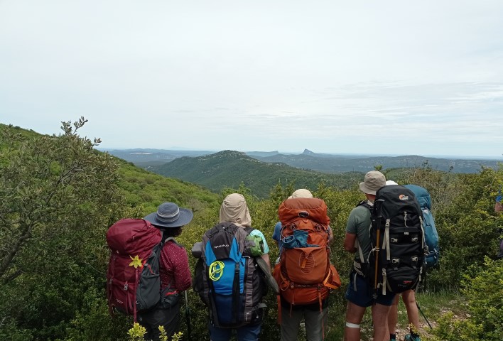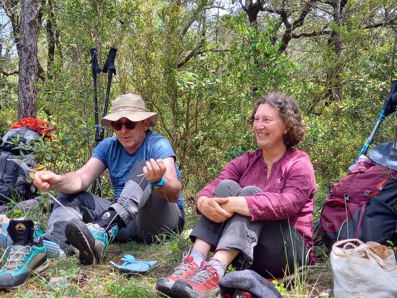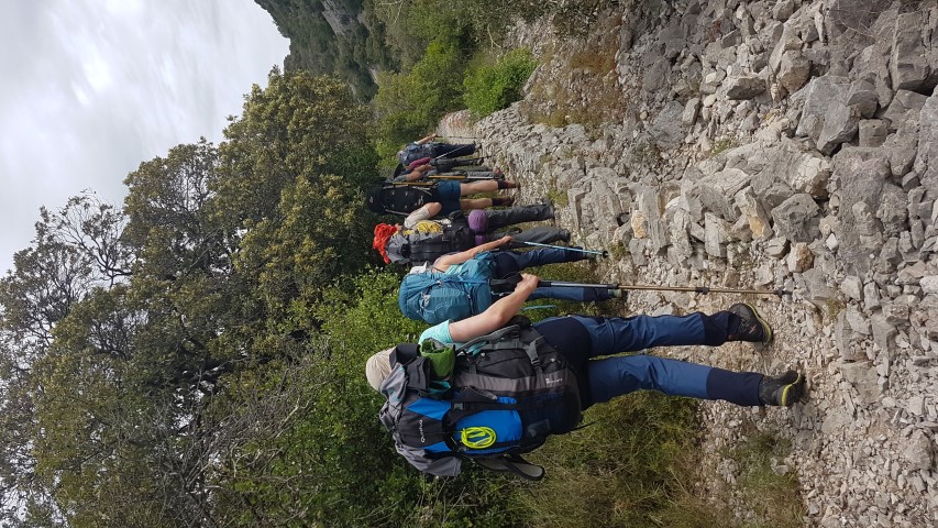 Les sacs sont lourds mais la motivation et la bonne humeur sont là pour démarrer ce 1er jour. Nous montons progressivement par un petit chemin sauvage, au travers de massifs odorants et fleuris.